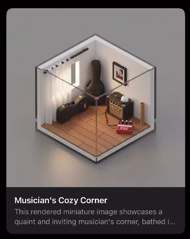 features two-dimensional flat illustrations.Inspired by this, I created a prompt for generating cozy miniature dioramas - something I’ve always wanted of my own office.