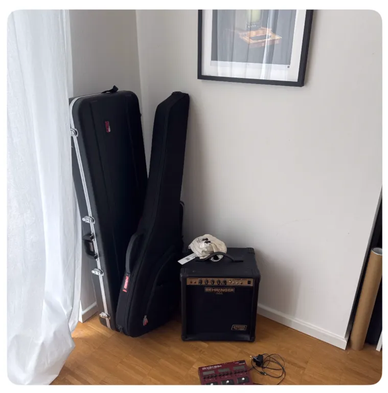 }Here is how this turned out for a snapshot of a corner of the music corner in my room. Notice how the instructions in the prompt to generate a workspace and include a laptop, chair, and books are very strong - even though those elements aren’t visible in the photo, the model includes them in the output image.