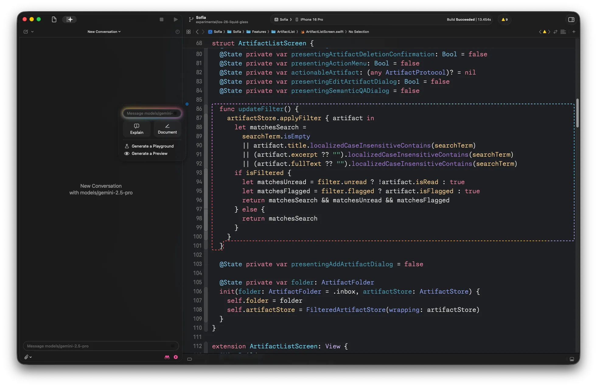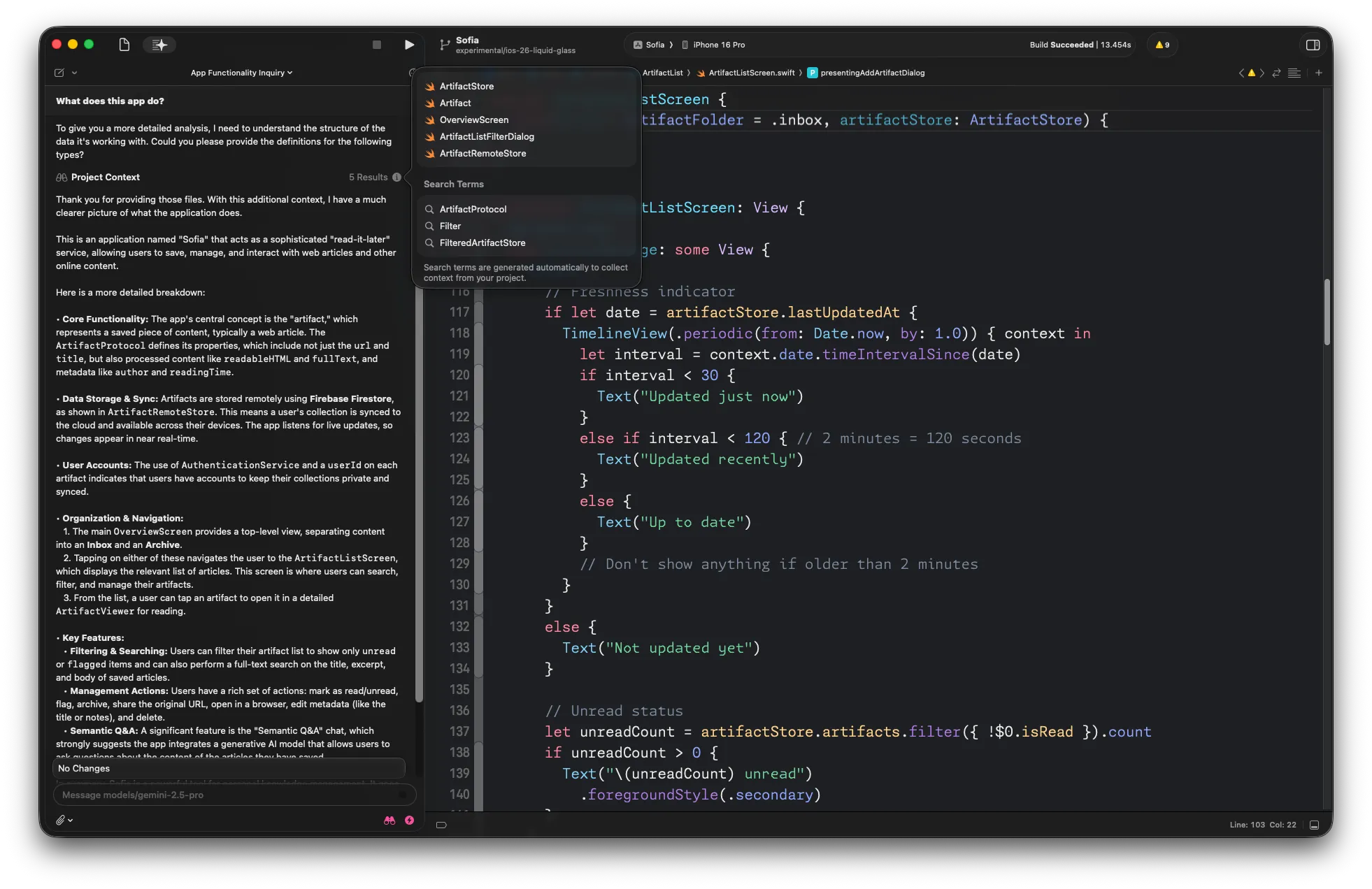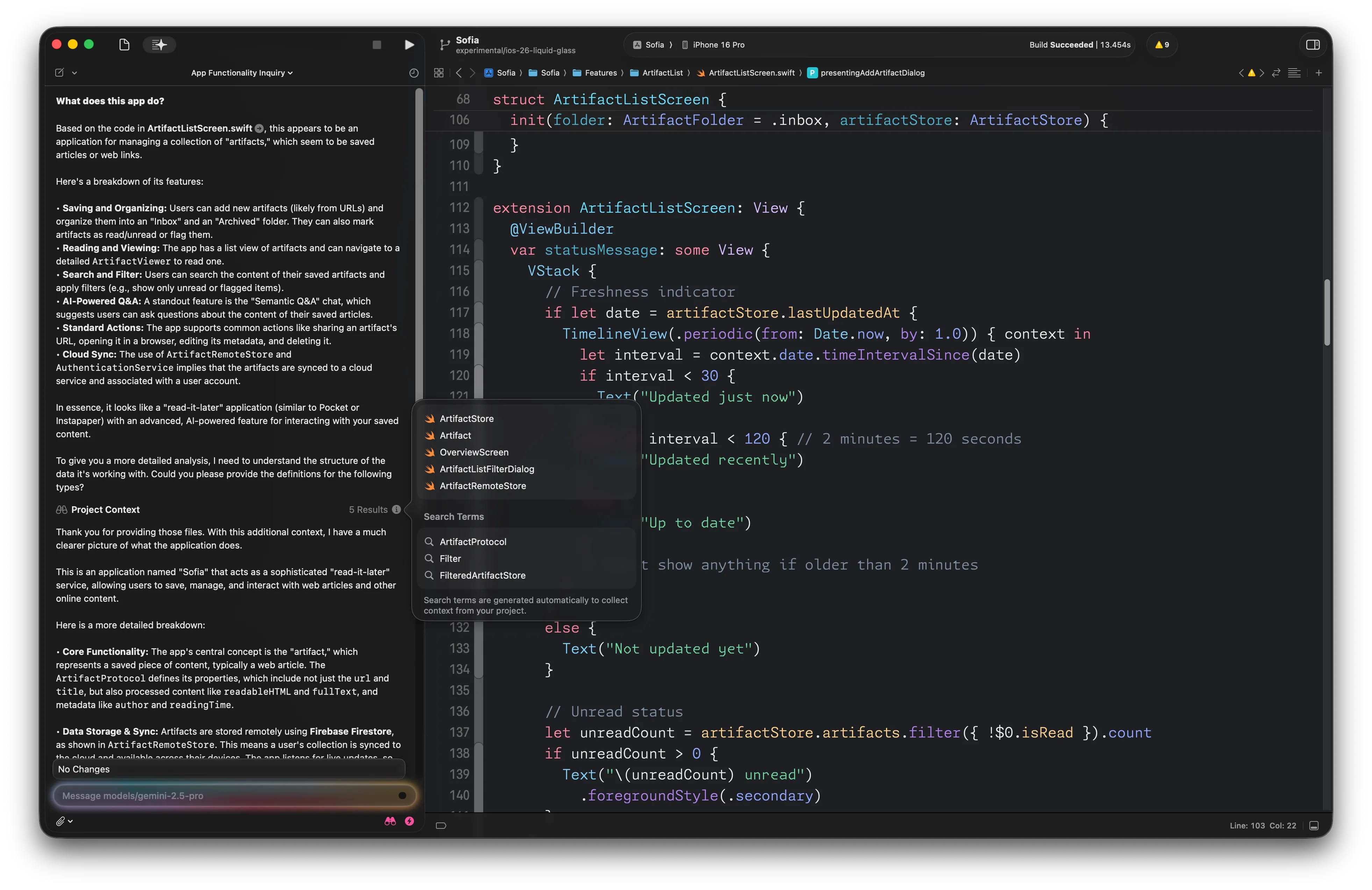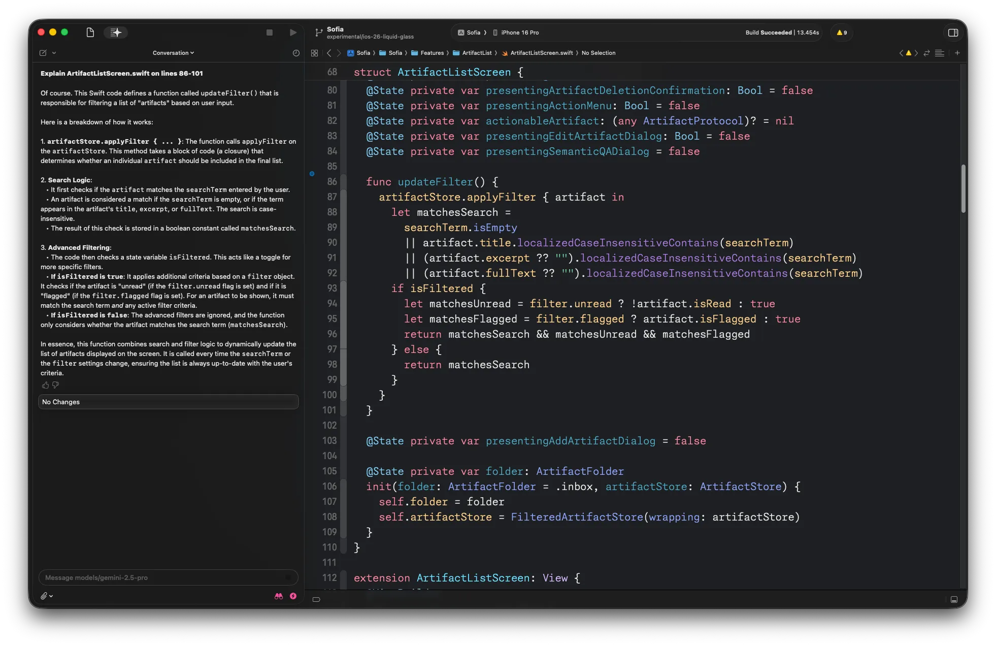 But this year, Apple delivered: Xcode 26 includes a fully functional version of Coding Intelligence, an AI-powered coding companion for a wide variety of coding tasks. Yes - you can vibe code with Xcode now - no more third party tools required.